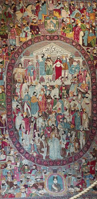 یکیش تم صورتی داشت که خوشم اومد و یه خانمی بافته بود دومی هم که می ذارم عکسشو خیلی جالب بود کلی شخصیت رو رو فرش آورده بودن و رو هر آدم شماره ای متخص به خود اون آدم بود که اطراف اون فرش اسمش رو با شماره نوشته بودن